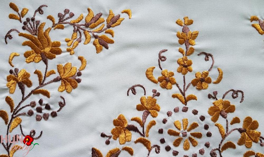 Hímzés: kézi hímzés, óarany barna selyemmel